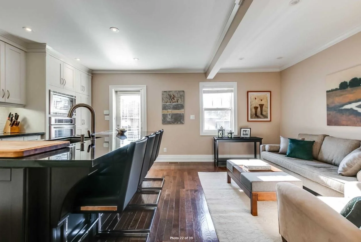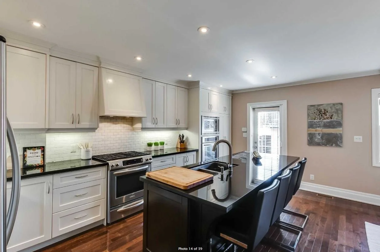 Renovated 4+1 bedroom, 4 bathroom with main floor family area in coveted John Wanless/Glenview/ Lawrence Park school districts. Rare three car parking (legal front yard and accessible two car detached garage at the rear. Hardwood floors throughout. Chef's kitchen with tons of cupboards and counter space, granite countertops and a family sized centre island. Gas fireplace, pot lighting, main floor powder room, master bedroom with ensuite, finished basement with nanny’s room and full bath.