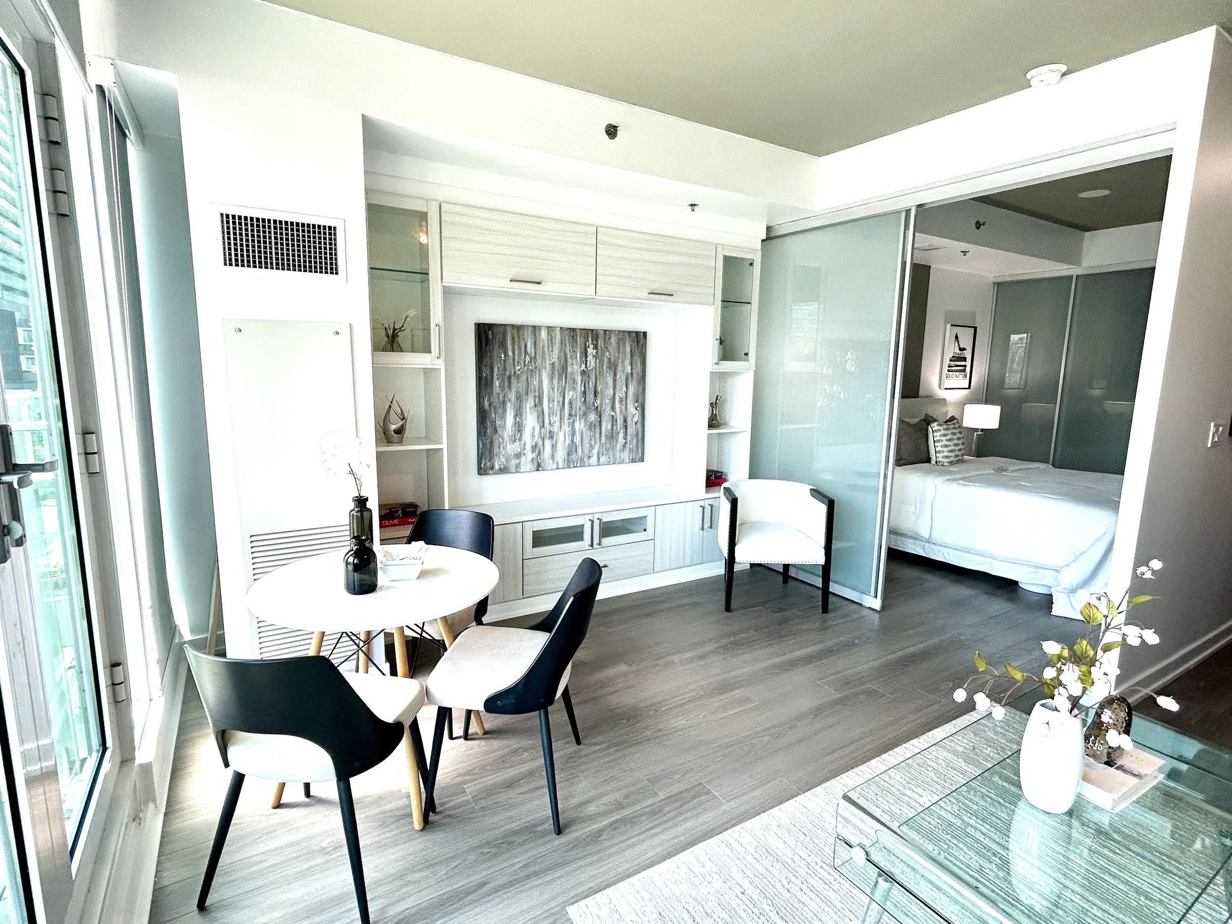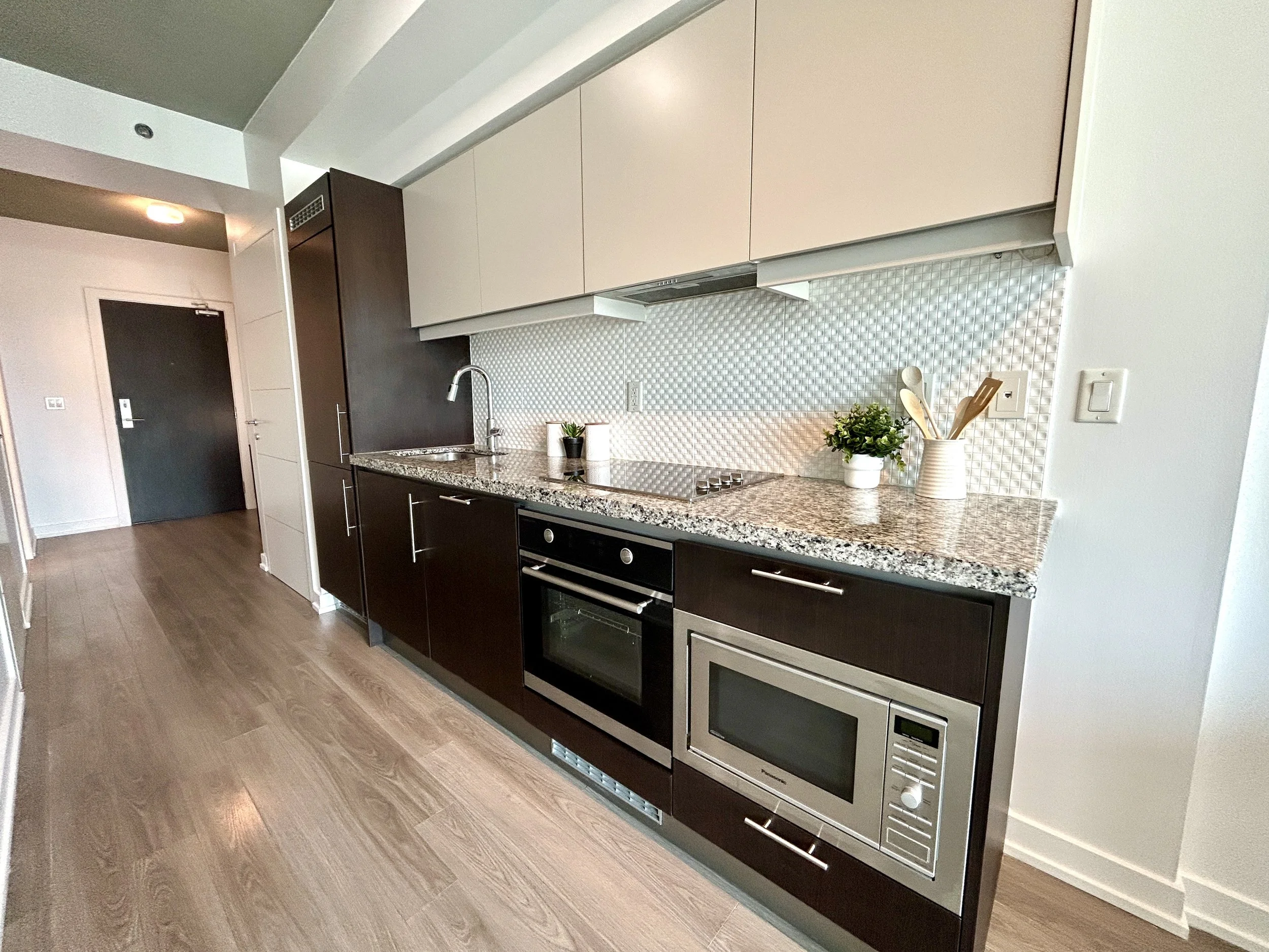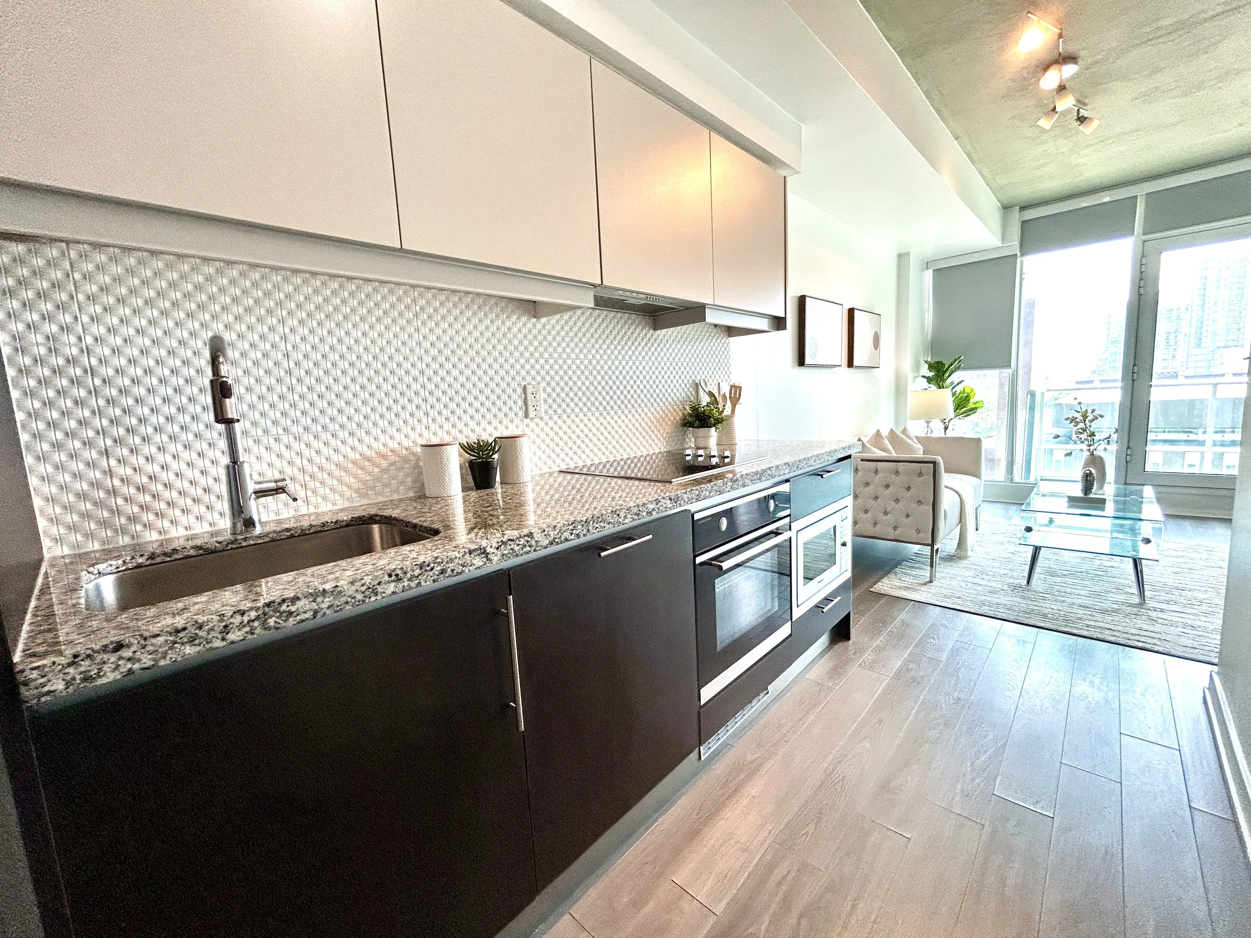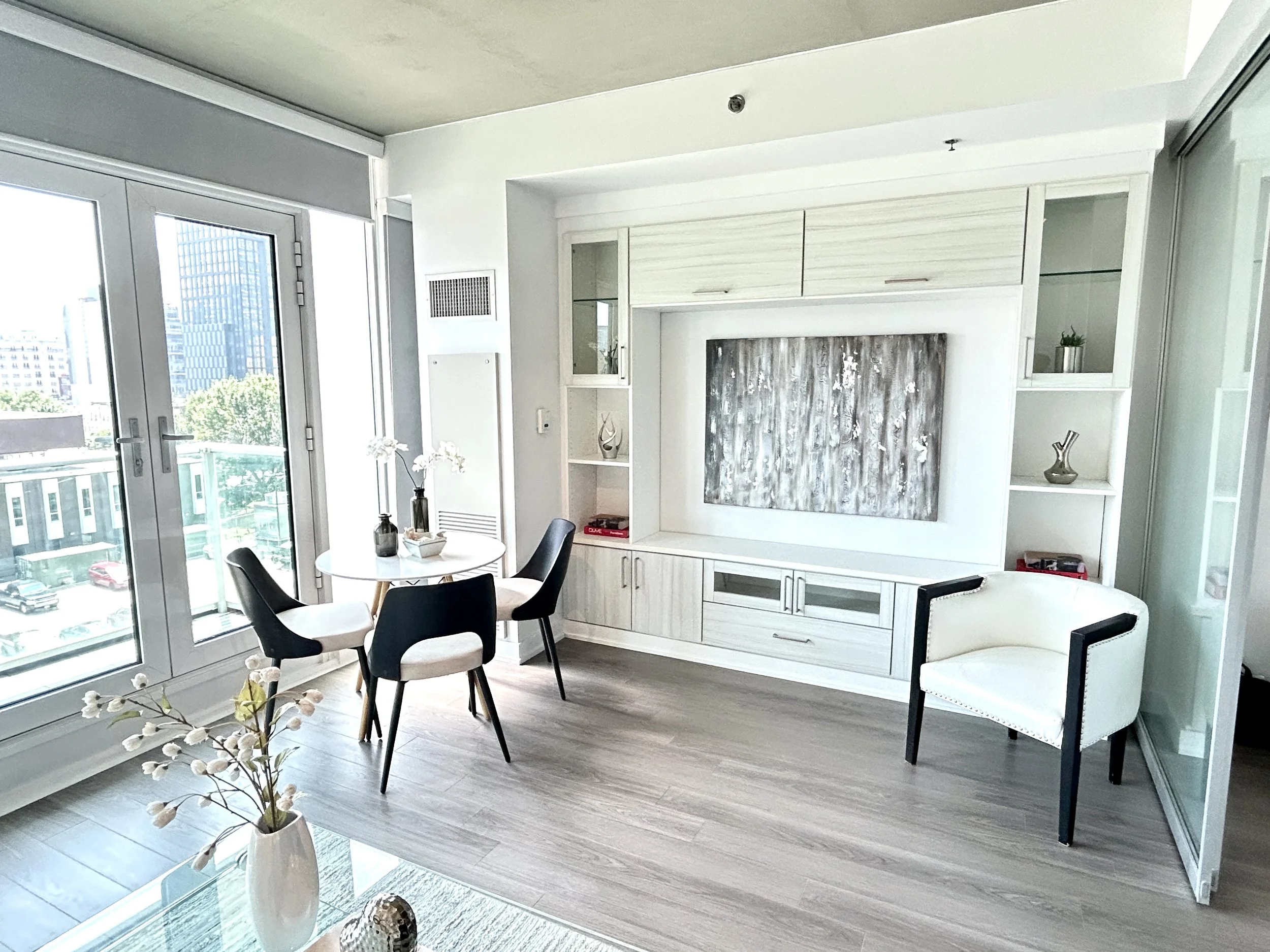 Bright, south facing one-bedroom with open balcony in quiet boutique condo. Floor-to-ceiling windows, nine foot ceilings, French door opening to balcony with hidden, retractable roll screen. Beautifully appointed - built-in appliances, stone countertops, California Closet built-ins in living room, bedroom, bathroom and hall closet providing lots of extra storage. Amenities include third floor terrace with BBQ, second floor exercise and party room, evening concierge (Sunday to Wednesday 5:00-11:00 and Thursday to Saturday 5:00 - 1:00). Easy walk to Eaton Centre, St. Lawrence Market, George Brown and Toronto Metropolitan University. Future Ontario Line subway stop at Queen/Jarvis. Luxury Hyatt hotel opened just next door. Parking (P3 - second spot from elevator lobby) and locker included.