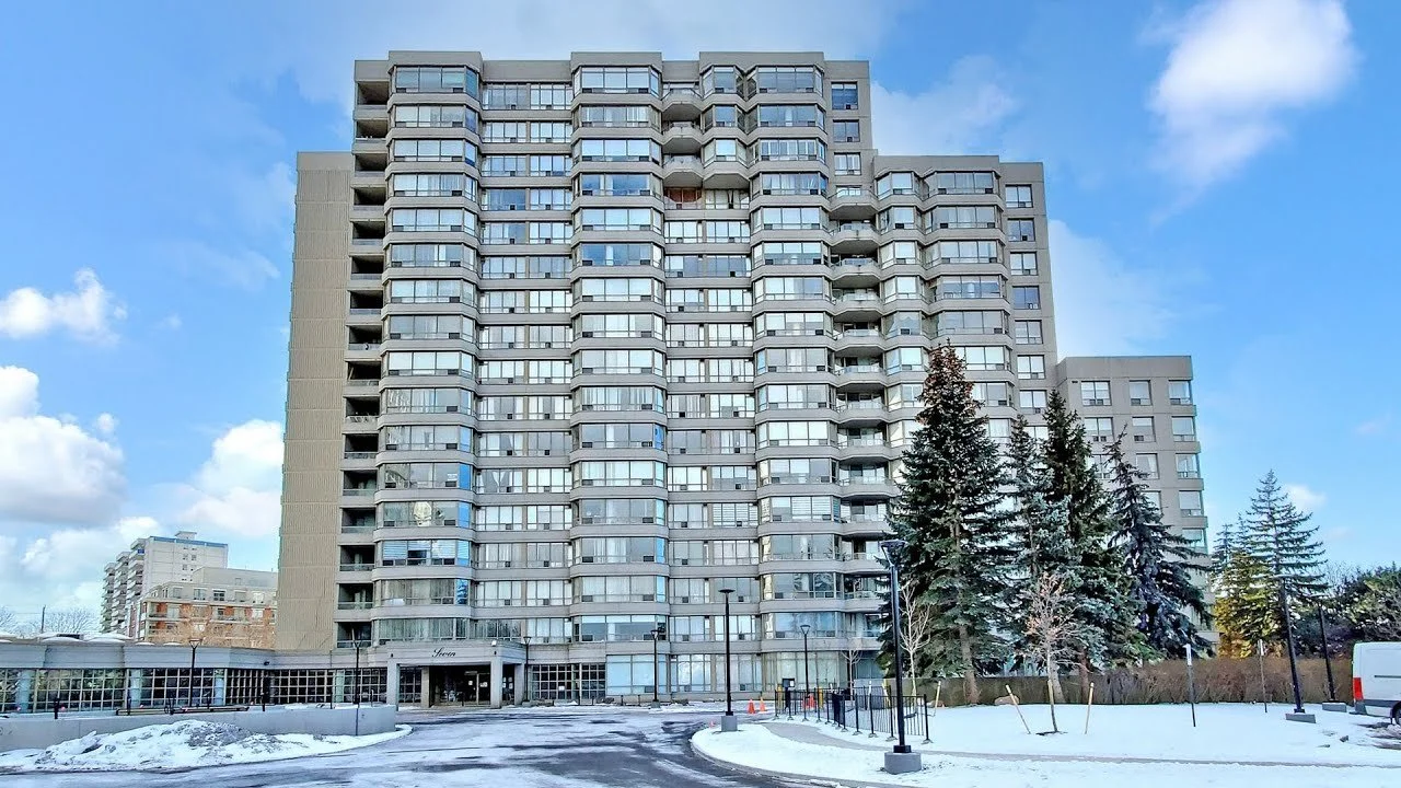 Bright, southwest-facing two-bedroom, two-bathroom suite with desirable split bedroom layout, offering 1,392 square feet (as per MPAC). Large bay windows allow for abundant natural light, while the fifth floor, tree-level setting provides a peaceful, green outlook. Practical floor plan with generously sized rooms allows for easy furniture placement in both living/dining areas and bedrooms. Eat-in kitchen with ample added cupboard space. Primary bedroom features a large walk-in closet and beautifully renovated ensuite bathroom with an accessible walk-in shower, large enough to sit comfortably in. Well-managed building with 24-hour security and excellent amenities including indoor pool, hot tub, exercise room, racquet courts (squash, tennis, pickleball), party/meeting room, library, and plenty of visitor parking. Hallways are under renovation. Check the design board in the lobby. Short walk to Bathurst & Steeles shopping, plazas, and everyday conveniences. Added bonus: condo fees include heat, hydro, air conditioning and cable/internet. The suite has two side-by-side parking spots and the locker, also located on the fifth floor, is massive at approximately 15 feet deep x 4 feet wide.